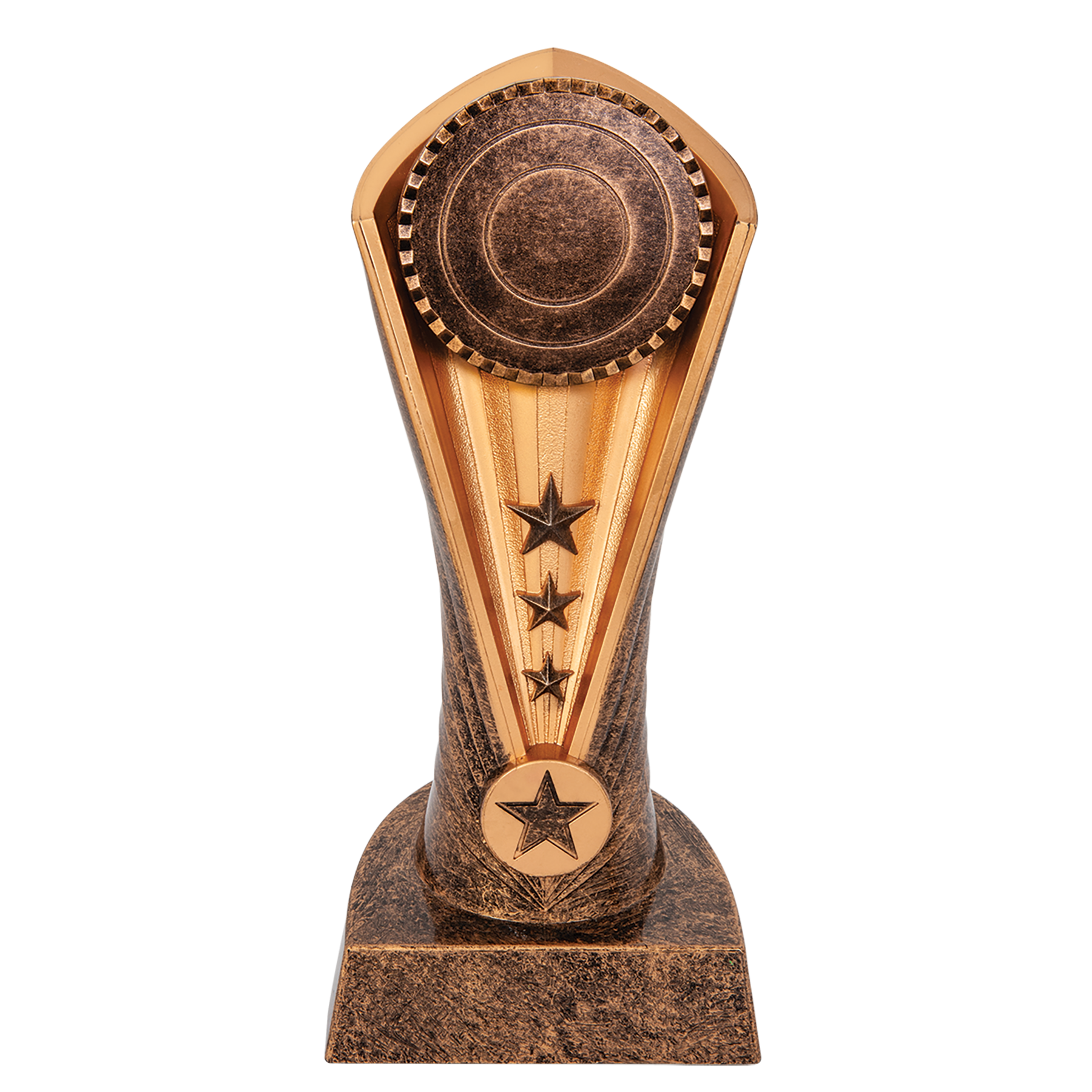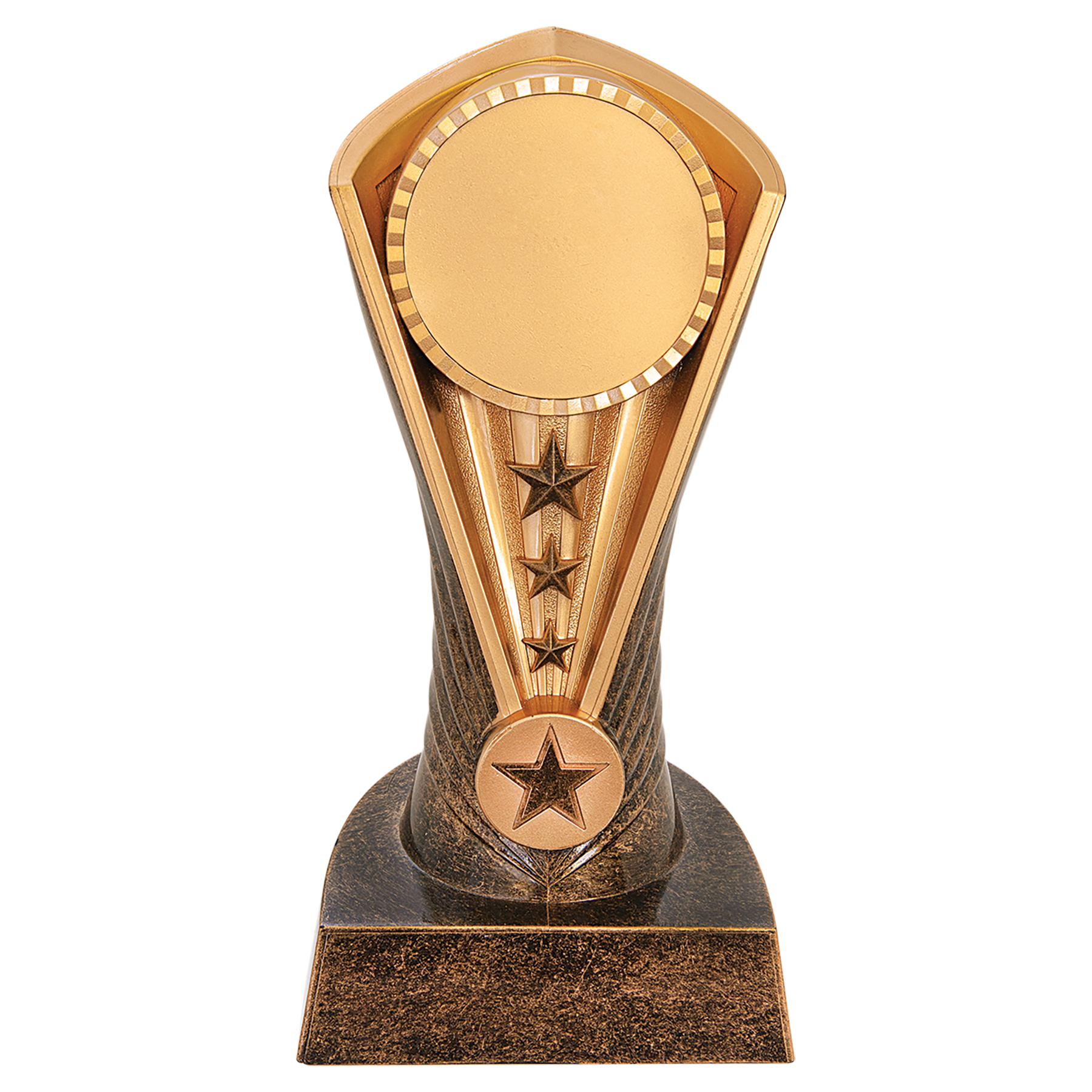 The Cobra Award is made of weighted Plastic. The gold/antiquegold award has a rounded back with the "hood" detail around the ball. Just add a plate to this award and it's ready to go! All weighted plastic awards are individually boxed.
