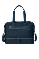 This versatile Oxford Weekender Travel Bag is crafted from durable polyester with genuine leather accents. It features a dedicated padded laptop compartment, a separate shoe compartment, and multiple pockets for organized packing. Perfect for short trips, it offers comfortable carrying options and a trolley pass-through for easy travel.