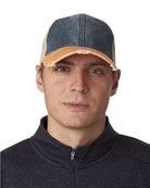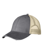 - Distressed torn visor and cotton twill sweatband