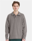 Unisex Garment-Dyed Polo Collar Sweatshirt