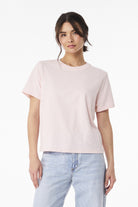Experience ultimate comfort and style with this women's heavyweight tee. Featuring a trendy boxy relaxed fit and a versatile mid-length cut, it's perfect for everyday wear. Crafted from premium Airlume combed and ring spun cotton, this tee offers exceptional softness and durability, complete with a tear-away label for added comfort.