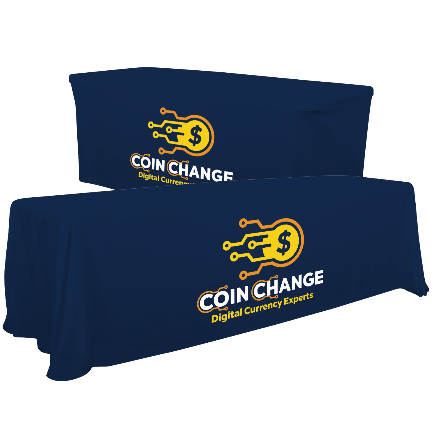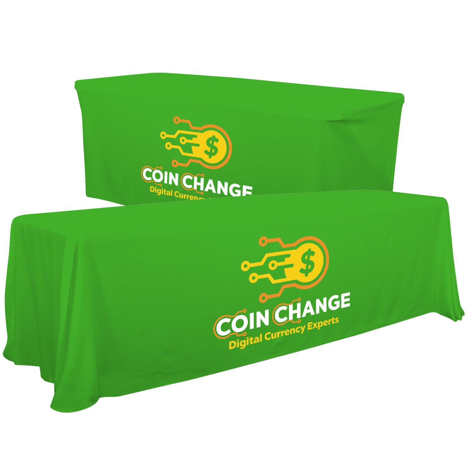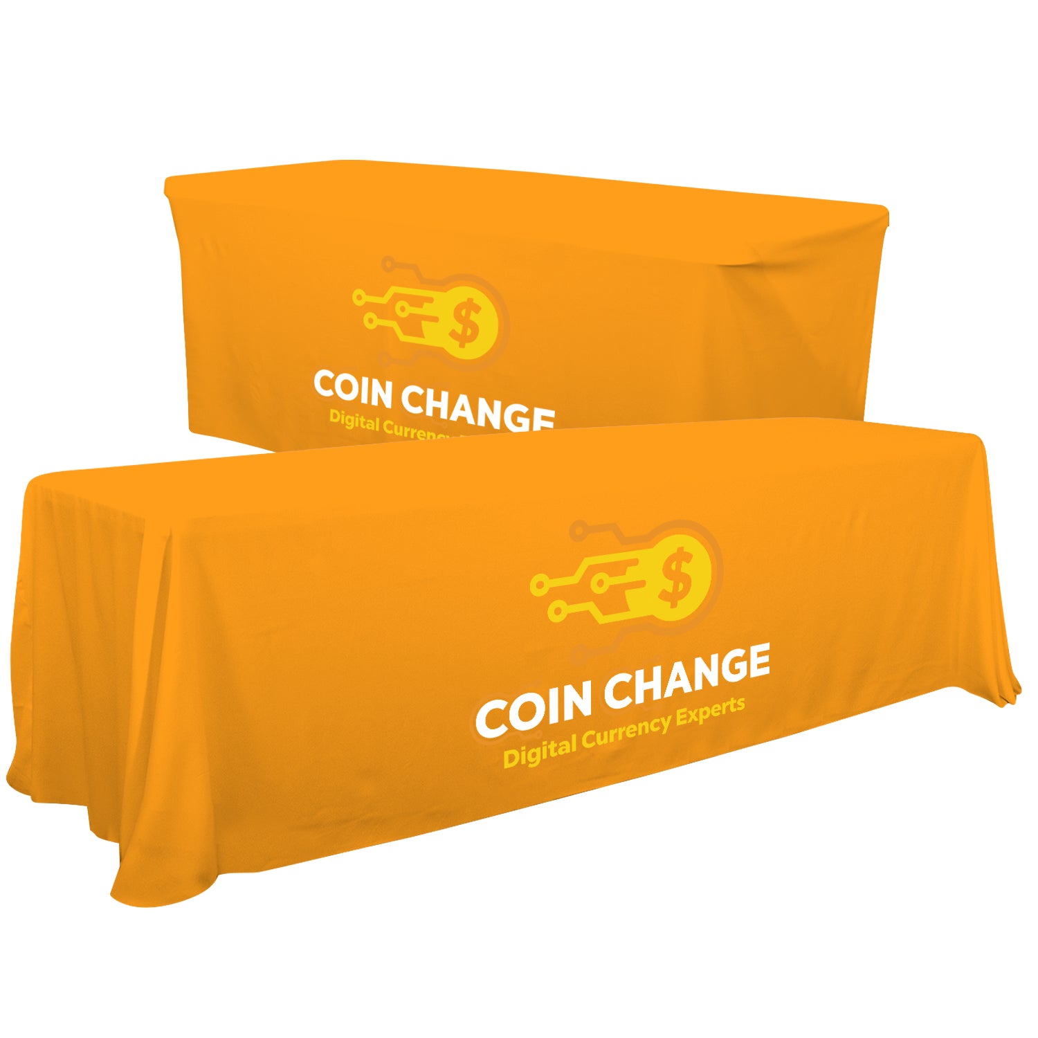 Esta manta es fácilmente convertible, por lo que se adapta a mesas de 8' y 6'. Simplemente doble los bordes y fíjelos a las tiras de velcro en la parte posterior de la manta...