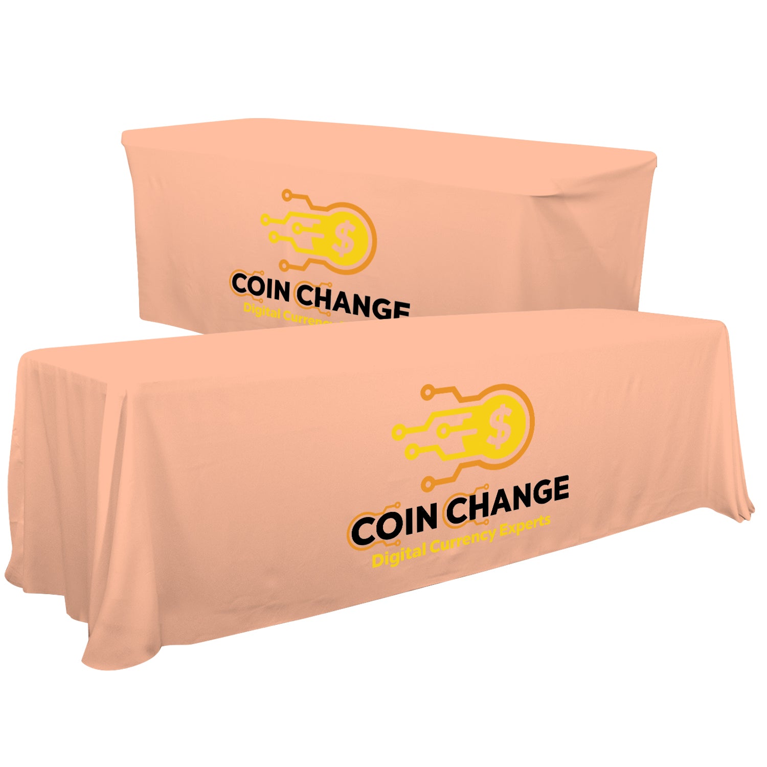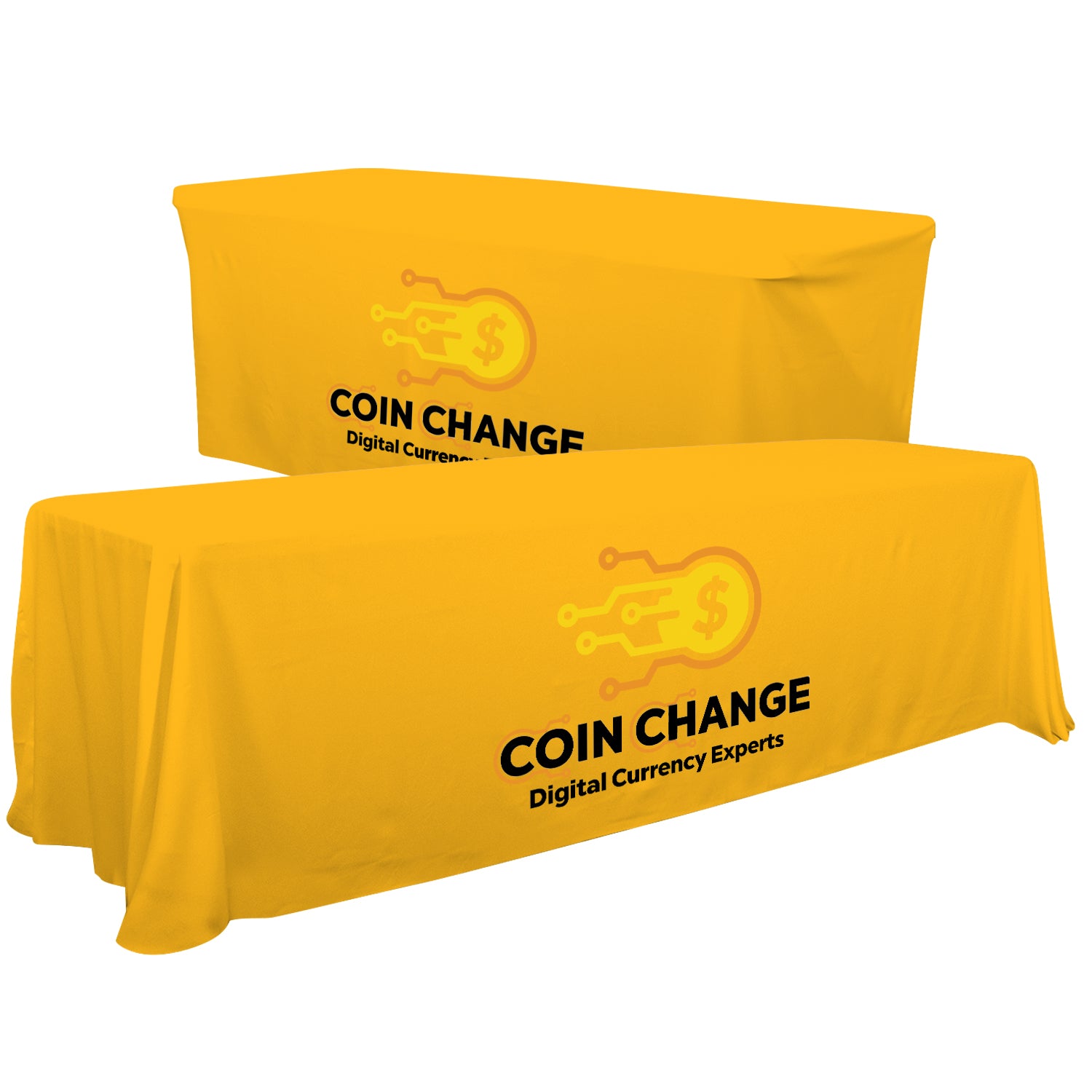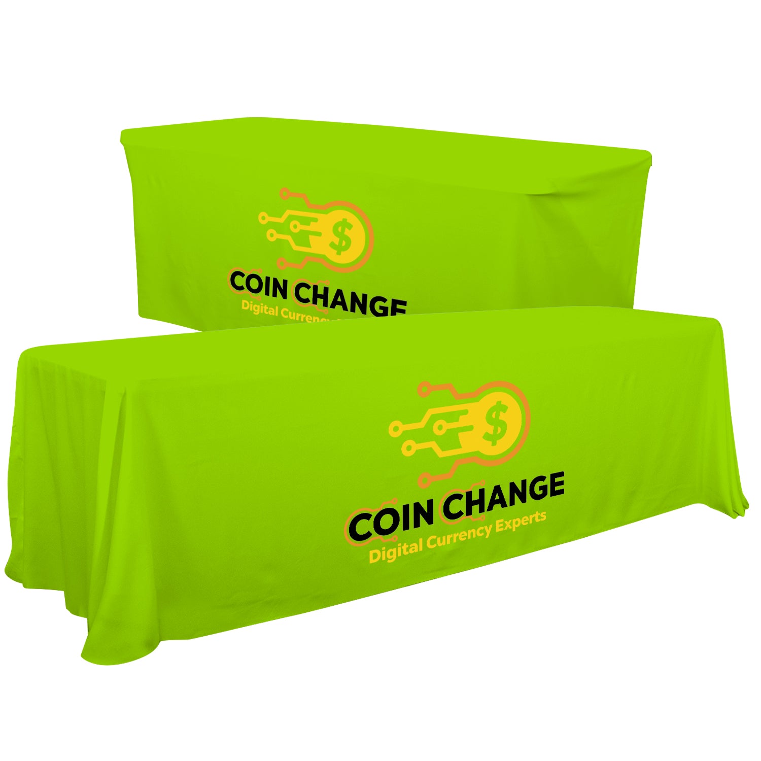 Esta manta es fácilmente convertible, por lo que se adapta a mesas de 8' y 6'. Simplemente doble los bordes y fíjelos a las tiras de velcro en la parte posterior de la manta...