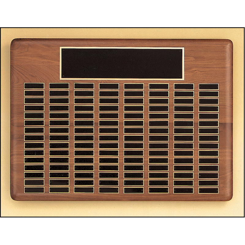La línea de placas perpetuas más popular de Estados Unidos, apropiada para paredes de donantes y ex alumnos. Placa de nogal americano macizo con borde elíptico de precisión. Una amplia variedad de combinaciones de placas que se adaptan a casi cualquier propósito. Placa(s) de latón negro. Las placas individuales miden 7/8" x 2-3/4". Hecho en EE.UU.