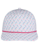• Slightly curved bill with contrasting rope braid