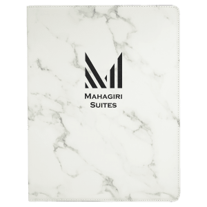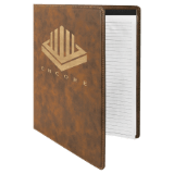 9 1/2" x 12" Laserable Leatherette Portfolio with Notepad. Laserable Leatherette offers the look and feel of genuine leather at a fraction of the price. This richly textured, synthetic material is spot resist ant, easy to clean and durable enough for the rigors of daily use. The high quality workmanship of each leatherette piece is sure to impress every recipient with its elegant individuality.