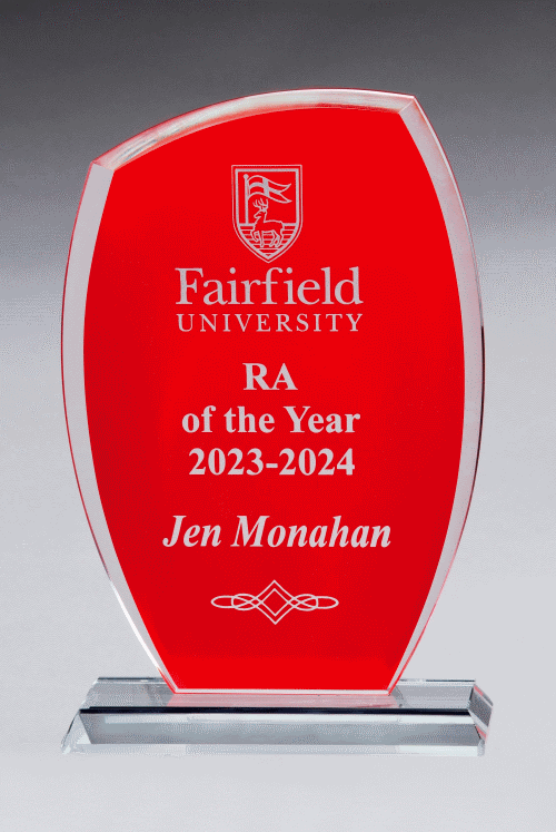 Tidal series clear glass with red painted background. 0.375" thick glass. Silk screened glass laser engrave only. Supplied with two-piece, satin-lined, padded gift box.